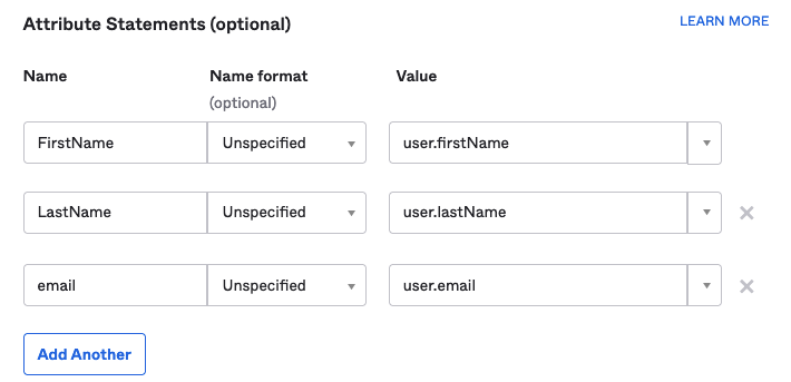 - Add the attributes that perfectly match what you have entered in Okta.