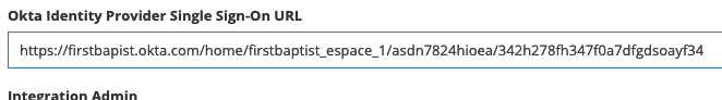 - Find the "Okta Identity Provider Single Sign-On URL" and set it to the value you copied from step 9 in the previous section. It should be something like this: