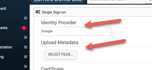 - Upload the Metadata file you just downloaded from Google. Upon uploading, the Certificate and Single Sign On Service URL should automatically populate.