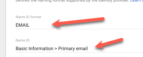 - For the Name ID field, choose "Basic Information > Primary email"