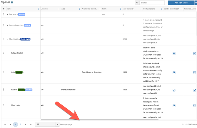 - 3. Scroll horizontally to see each detail of your Space shown in each column
