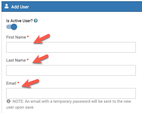 After any new user has been added, an automated email with a temporary password will be sent to the new user.