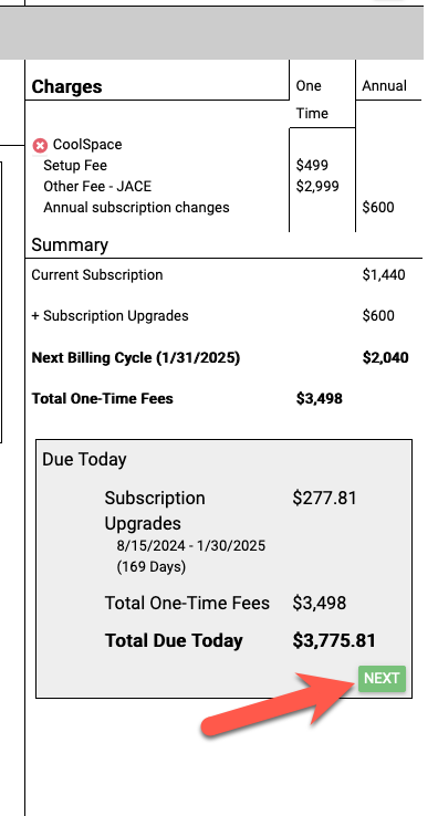 - Click "Next" to proceed with paying for your upgrade or new feature(s).
