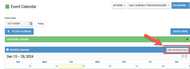 4.Hide Hover Details - If you don't want the pop-up box with event information to appear when hovering over an event, then select this option to disable that.