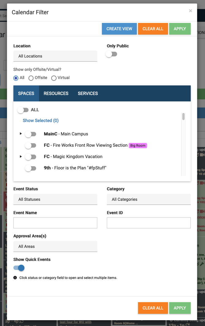 - Viewing Events Based on Spaces, Resources, Services Booked