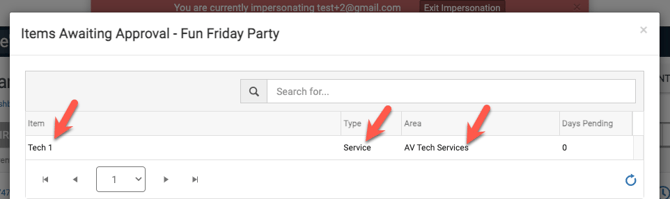 Overall when a sub-admin declines an item on an event that is in their approval area, the event owner will be notified. The event owner should then delete that declined item from the event. This also gives them the chance to choose another item for their event.