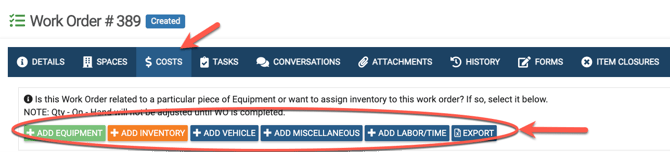 Once the work order has been assigned/approved, then the user will only be able to add to the General Comments section on the details tab, add/edit a space, add items on the Costs tab, start a conversation, add an attachment, edit the form, as well as view the changes on the History tab.