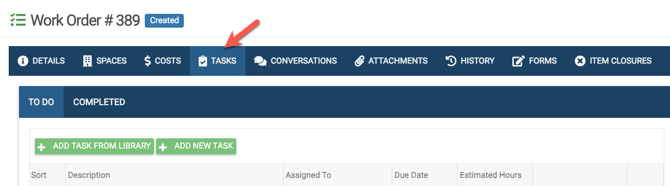 All admins and sub-admins who can manage work orders can add tasks to a work order, whether that's creating a new one or adding one from the task library.