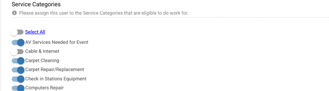 - All notifications under notification preferences will only be applied to the service categories, departments (if your account has departments) and locations that the user, sub-admin, and admin have access to under their user permissions.